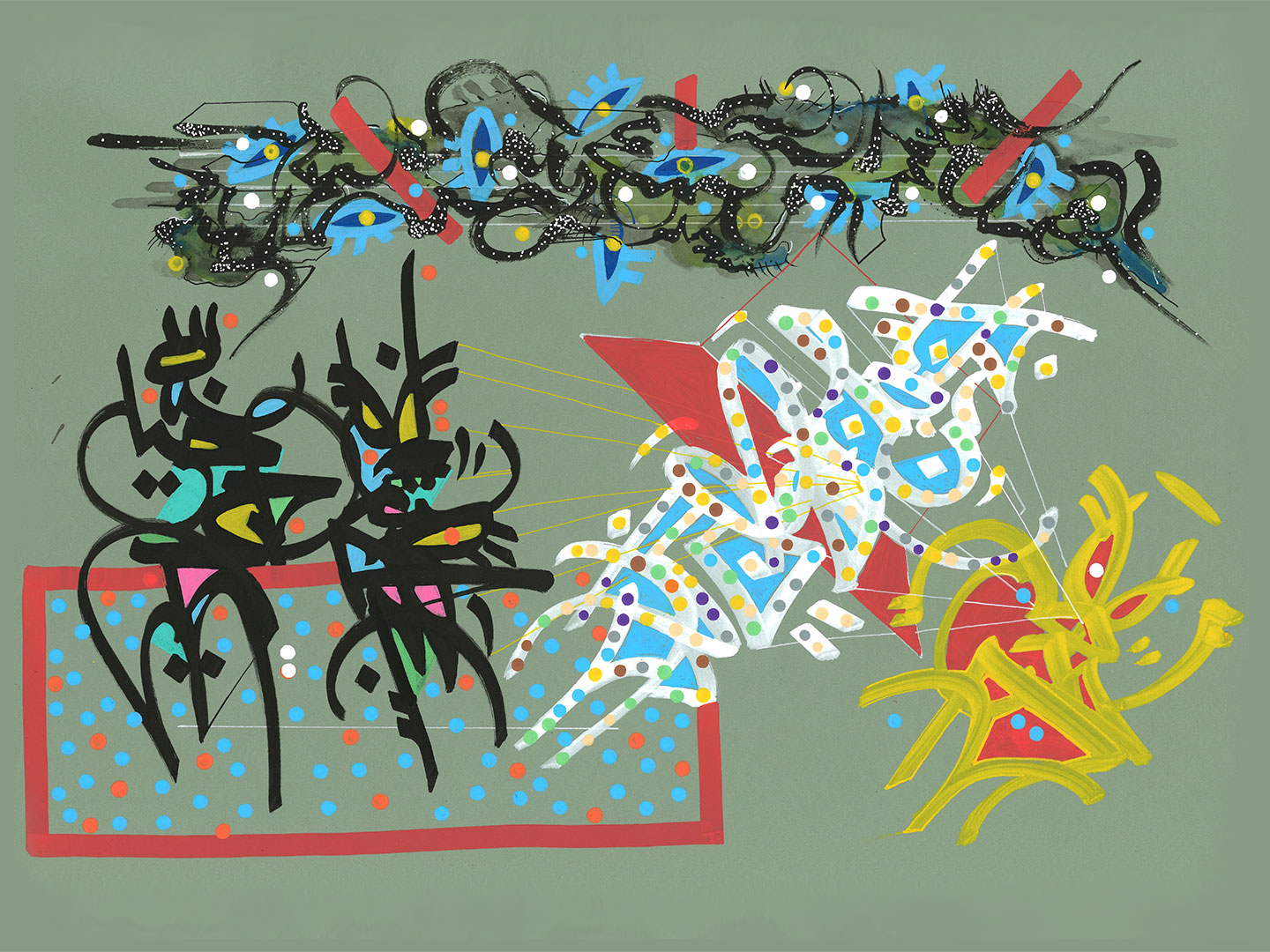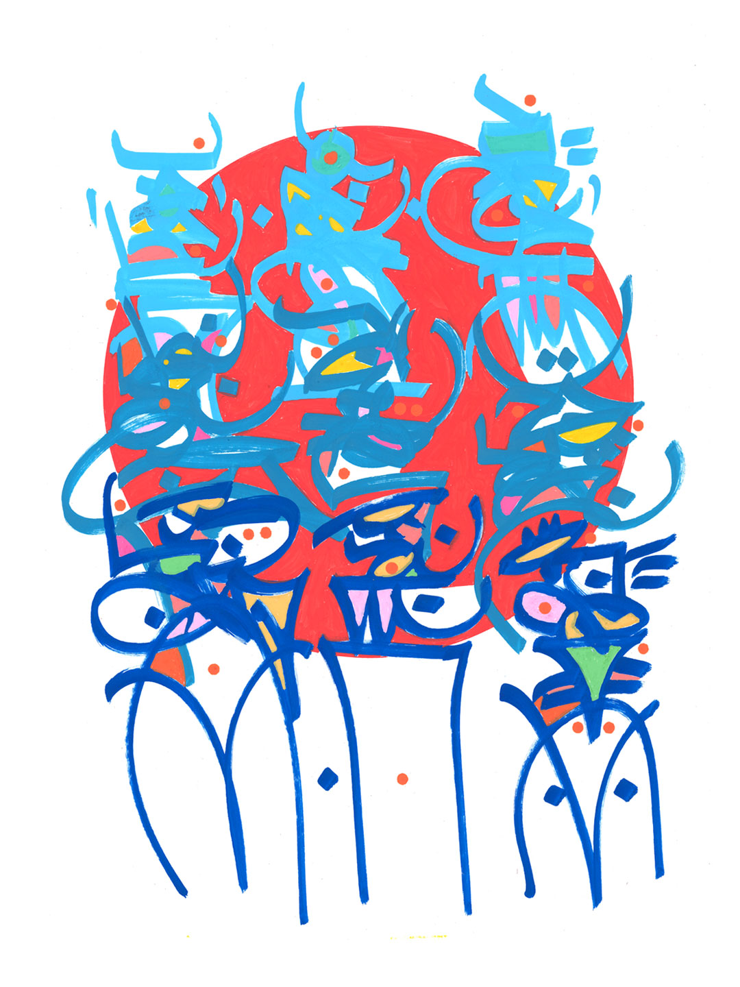 Having known their markers since his childhood, Amigo revisited them through the lens of his background in technical drawing and calligraphy. Precision, flow, ink, and water remain at the core of his practice – expanded by new works created with POSCA, presented in this exhibition.